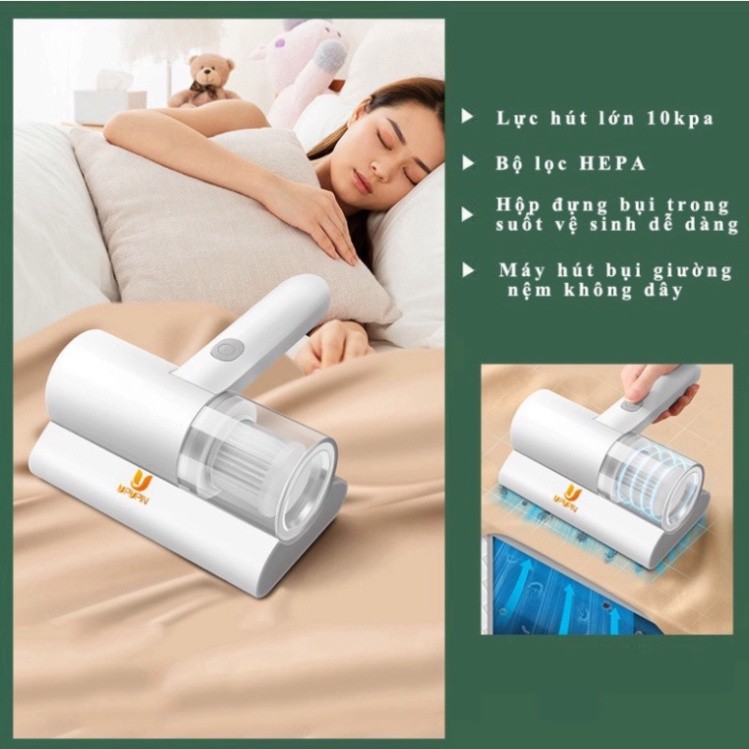 - Tên sản phẩm: Máy hút bụi giường nệm, máy hút bụi mini không dây sạc pin có tia UV khử khuẩn, hút ẩm không khí, chăn ga, ghế sofa